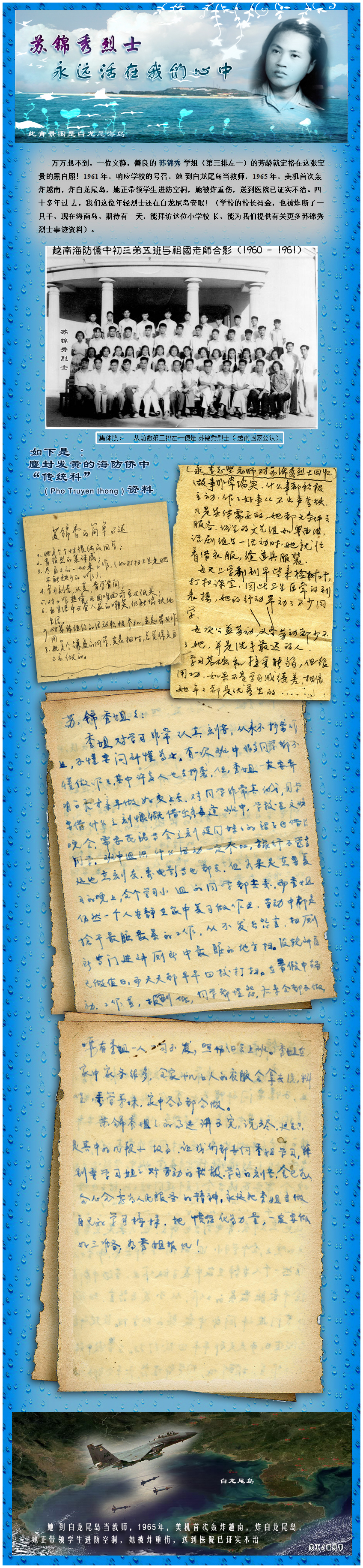 1;时代的缩影:1960年代初,正值越南战争期间,也是中国向越南提供广泛支持的时期。苏锦秀学姐作为华侨学生,响应学校号召,前往当时属于越南(但与中国关系密切)的白龙尾岛任教,这本身就是中越两国在那个年代“同志加兄弟”情谊的微观体现。她的选择,代表了一代人的理想主义和国际主义精神。