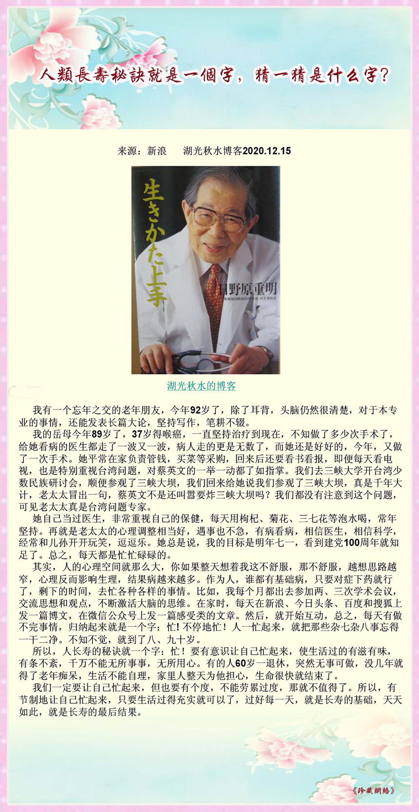 人类长寿秘诀就是一个字,猜一猜是什么字?