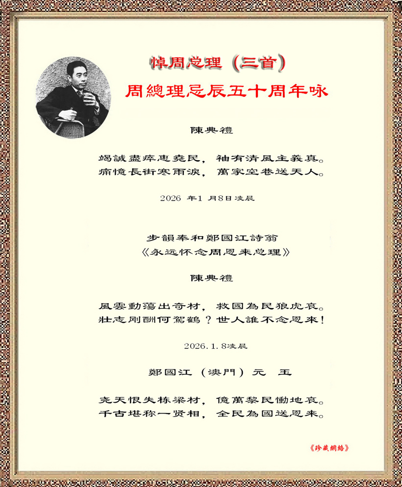 周總理忌辰五十周年咏(三首)(陈典礼)