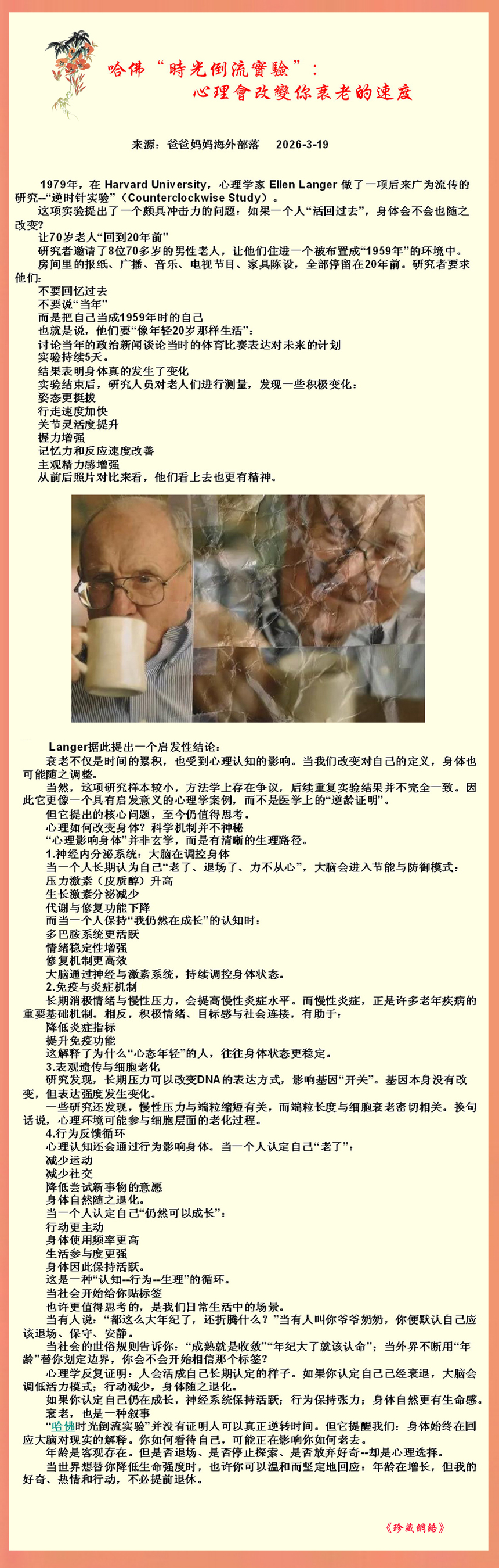 哈佛“时光倒流实验”:心理会改变你衰老的速度