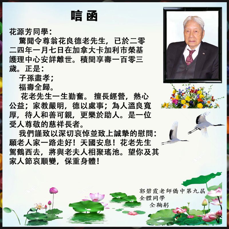 唁函 (郭碧霞老师 &侨中第9届同学)新增彩照《与花老太合照》
