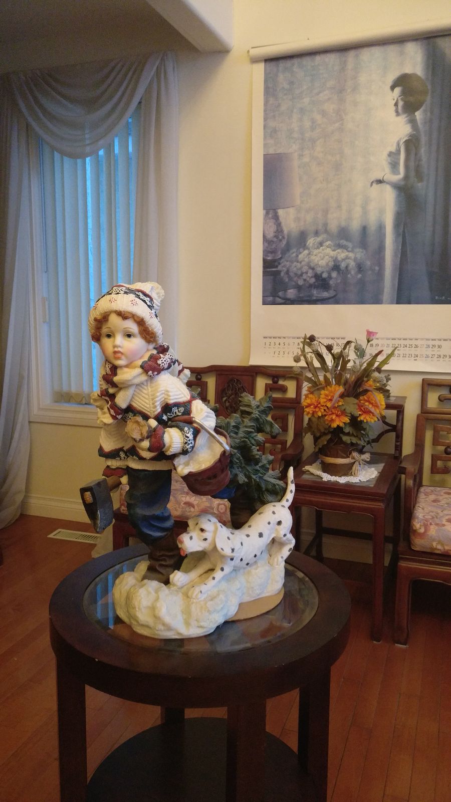 室内摆设的小塑像:“砍松树枝作圣诞树的小女孩”使我想起一段我们一家(三口)移民加国初期的往事: