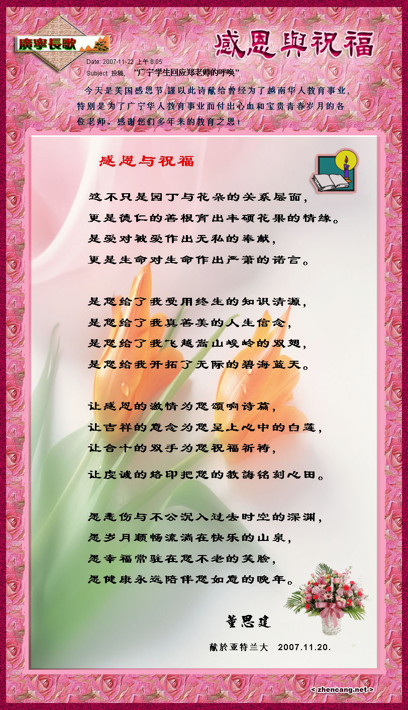 [靓文重现]__[广宁长歌]感恩与祝福 ( 董思建 于亚特兰大 )附链接: 诺言与奉献(纽约 韩晴光)