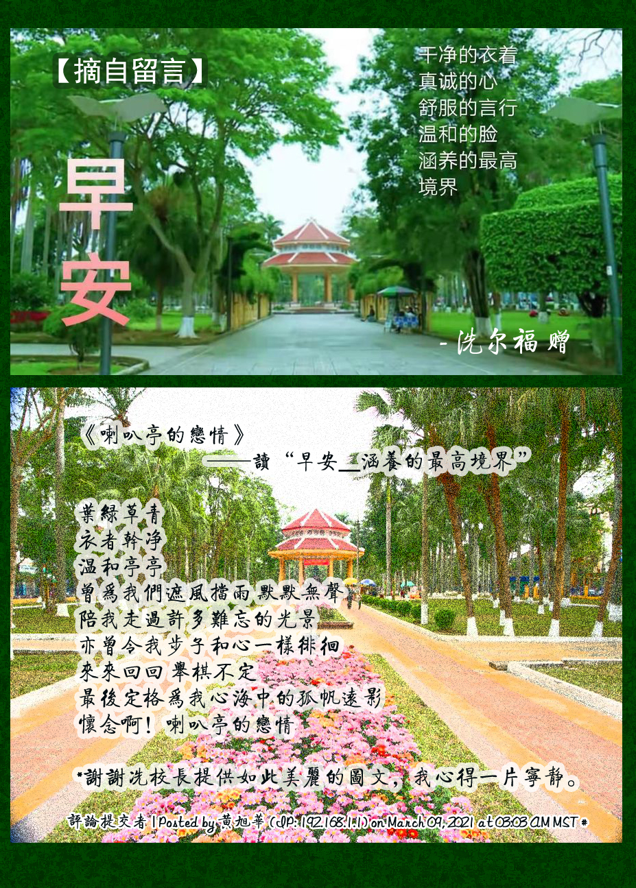 这首诗最终成就的,是一座用文字建造的记忆亭台——它让离散各地的侨中生,仍能在此“亭前四面楼梯级”相遇,完成跨越时空的集体留影。那些被历史潮水推往世界各地的“孤帆”,始终维系着通向青春原点的情感航道。(来自DeepSeek评论)