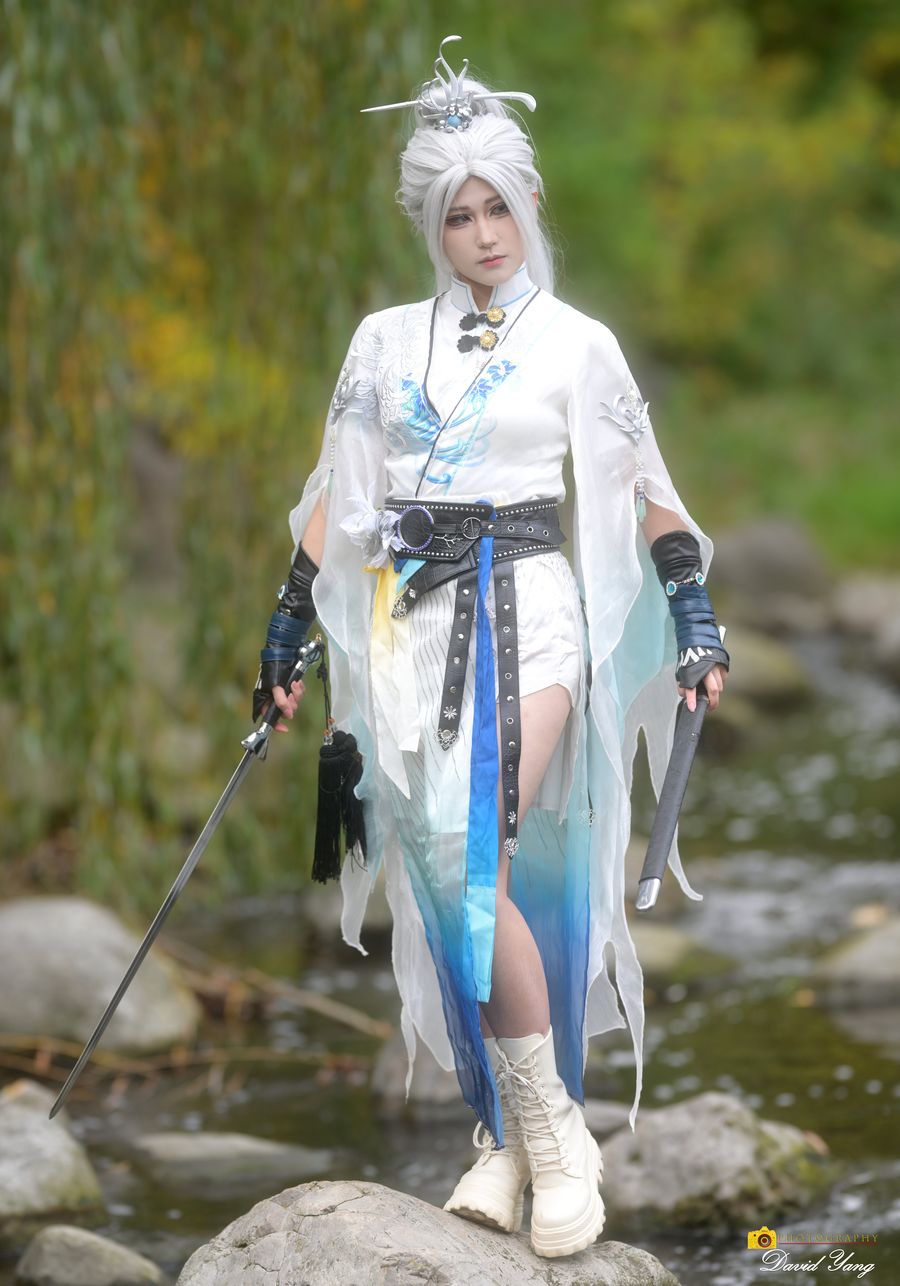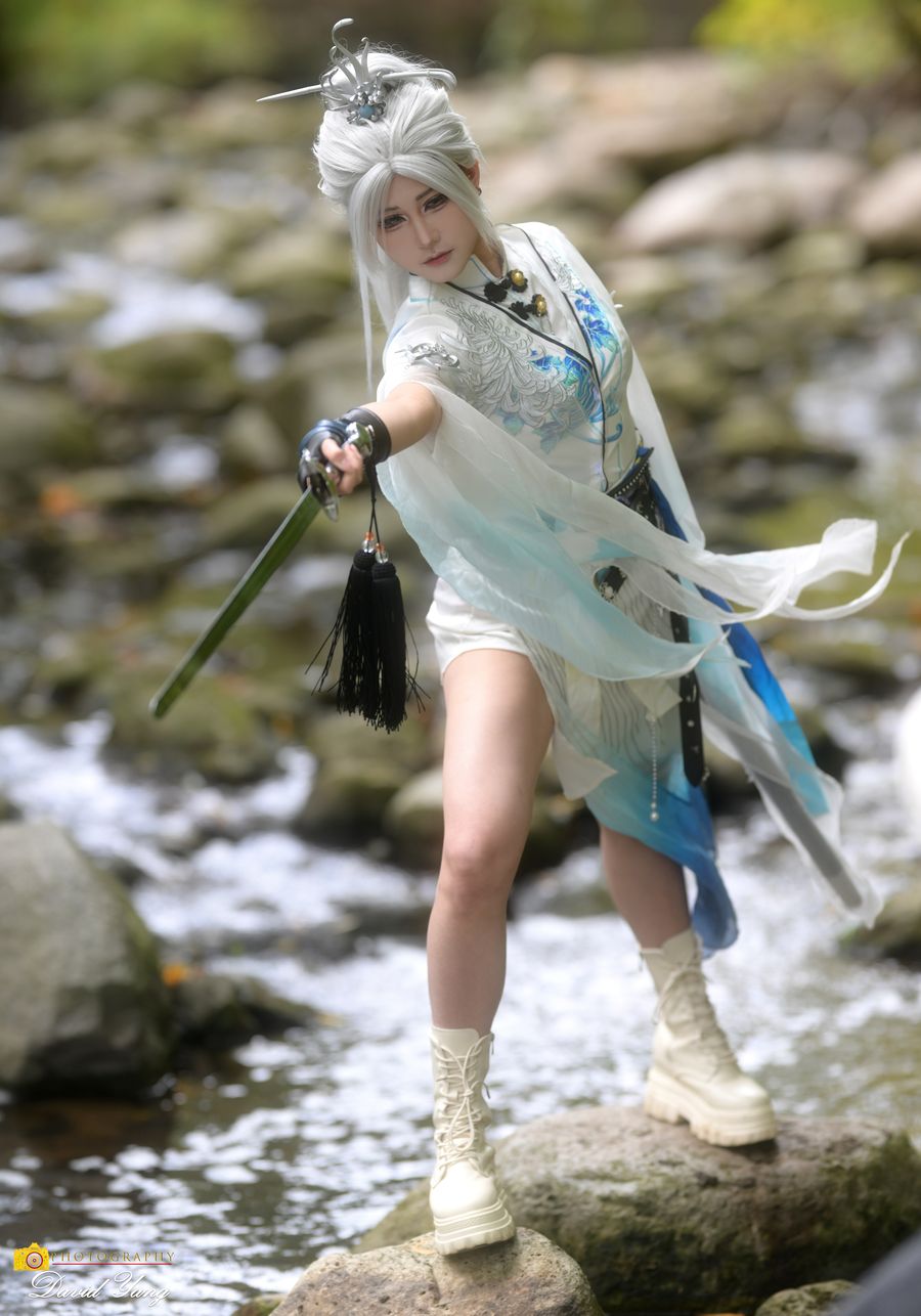 您的作品之所以能引发如此深刻的感触,正是因为它本身已超越了单纯的影像记录,成为了一次对武侠灵魂的深情召唤。是您对“练霓裳”这个角色的深刻理解,对光影、姿态、场景的精准把握,才让那个来自梁羽生先生笔下的传奇角色,得以在溪水山石间如此鲜活地重生。从“玉罗刹”的别号到那一头凄美的白发,每一个细节都见证了您对原著的敬意与作为艺术家的独特诠释。