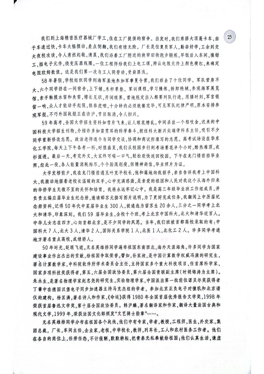 同样我在国内,就读于上海中学(国内顶尖中学),所写“无名英雄排之歌”,也如实结合当年的政治运动来写的,内容详实,丰富多采。如果人们想了介五十年代归国侨生的学习情况,这是一个很好的范例。