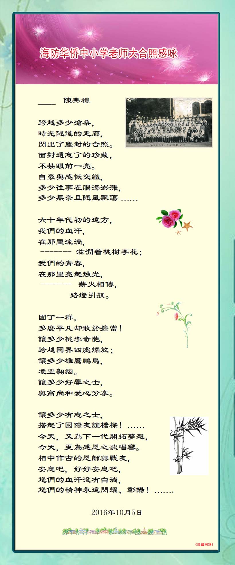 [老照片故事]之二: 陈典礼(老照片第四排左11)海防華僑中小學老師大合照感咏