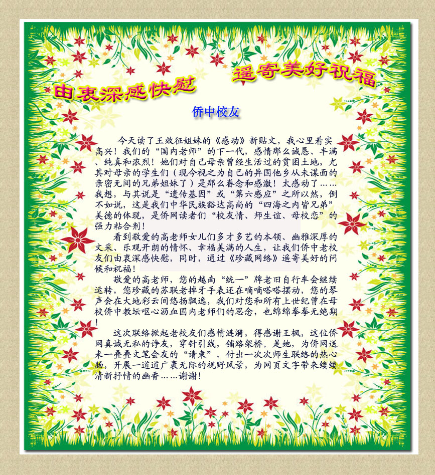 由衷深感快慰 遥寄美好祝福 (侨中校友)