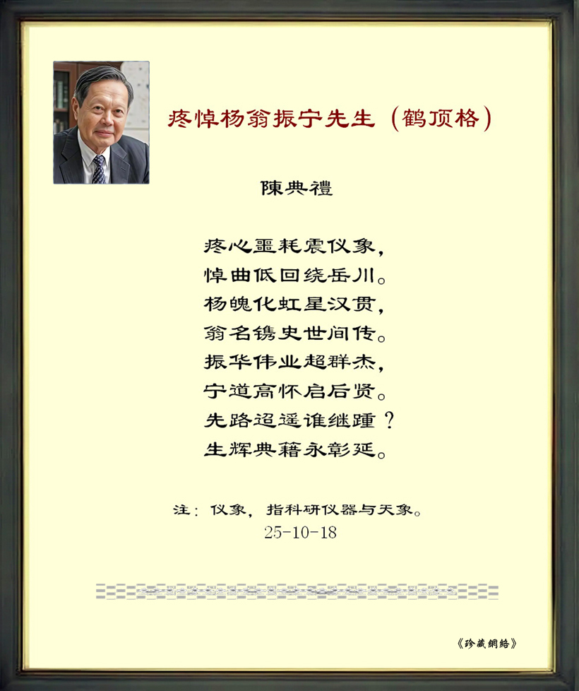疼悼杨翁振宁先生(鹤顶格)(陈典礼)