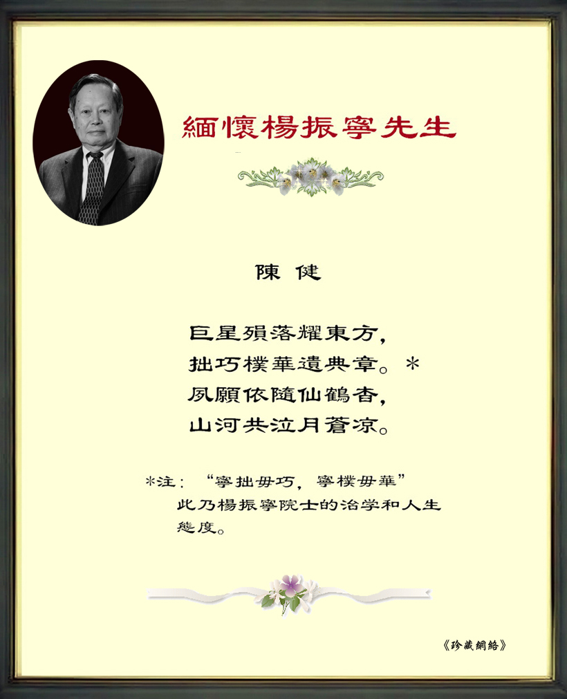 此诗精妙处在于用七律载体进行跨时空对话:既保持古典诗的韵律肌理,又注入现代科学精神的内核。当“仙鹤”意象与“巨星”隐喻在诗境中相遇,恰似杨振宁连接中华文脉与量子世界的学术人生,在格律平仄间完成了一次文明维度的诗意统一。