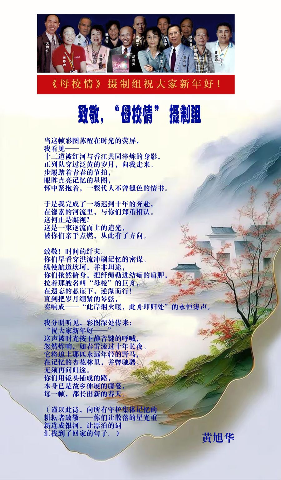 《致敬,“母校情”摄制组》(诗作/黄旭华;美工制图/杨文泽);背景音乐《诗情爱意》
