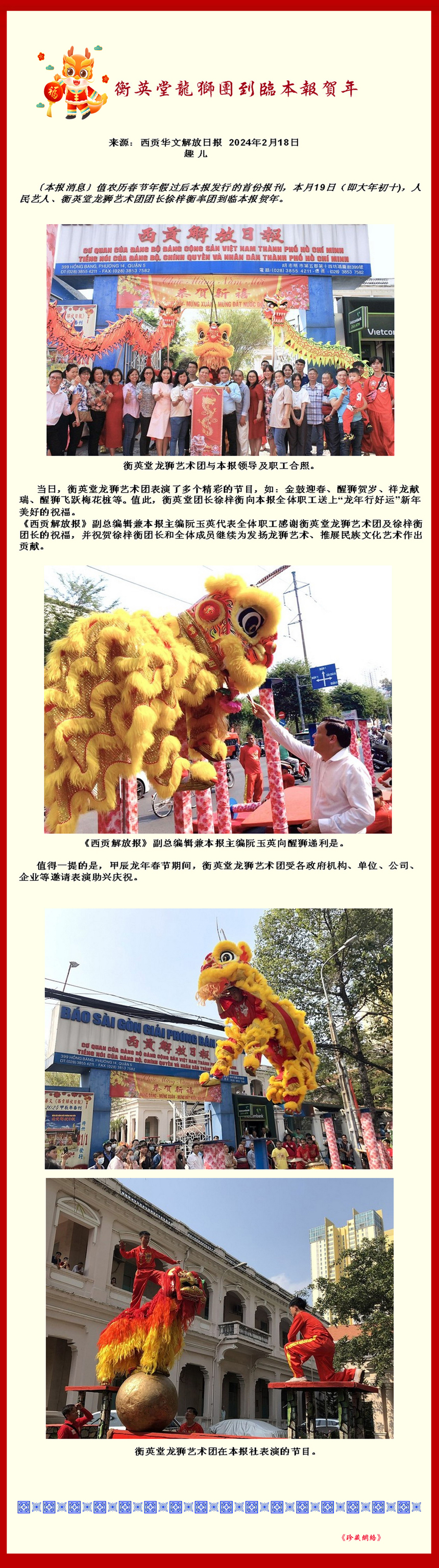 衡英堂龙狮团到临本报贺年