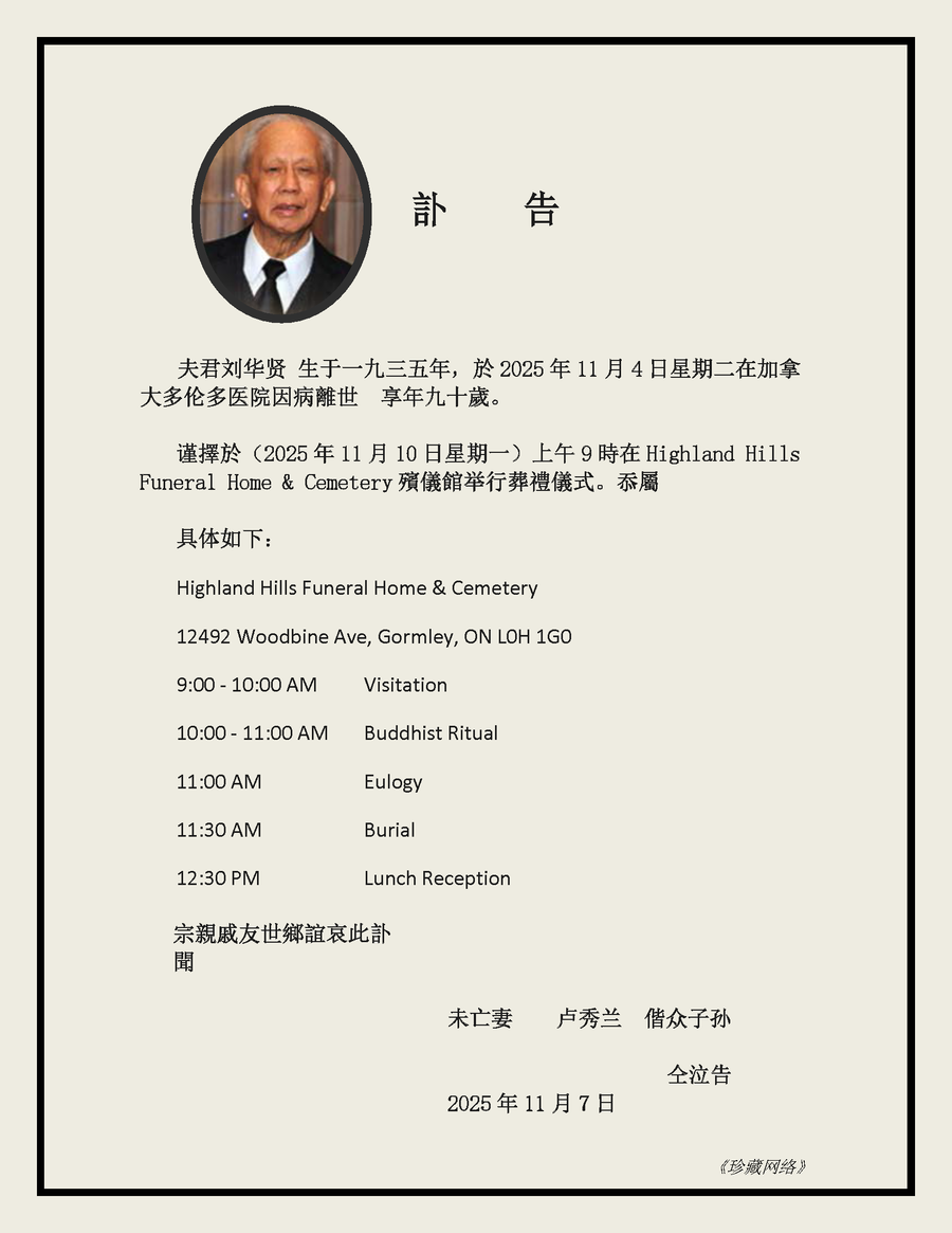 惊悉敬爱的华贤叔与世长辞晚辈悲痛万分,心感内疚不能前往送贤叔一程,但望华贤叔一路走好,家人节哀顺变。华文泣叩。