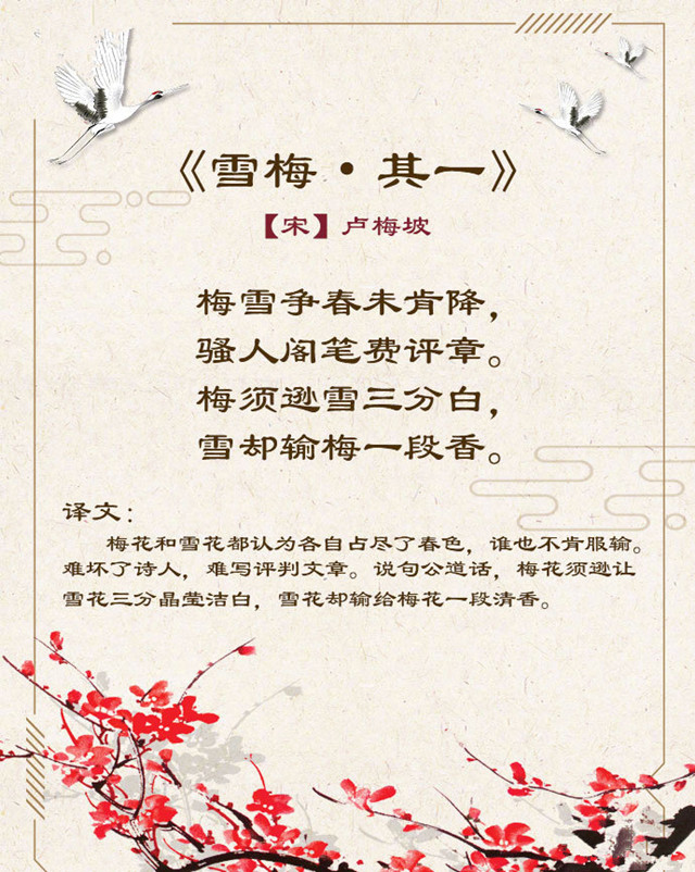 冬日里,那不惧风霜、不畏严寒、依然盛放的梅花,成为了一道美丽的风景。古人对严冬里这个独具一格的景致更是尽情吟咏,有很多知名佳作都是在描述窗外迎风斗雪傲立含笑的“她们”。今天,就让我们跟随这些唯美的梅花诗,踏雪寻梅,寻一缕暗香。