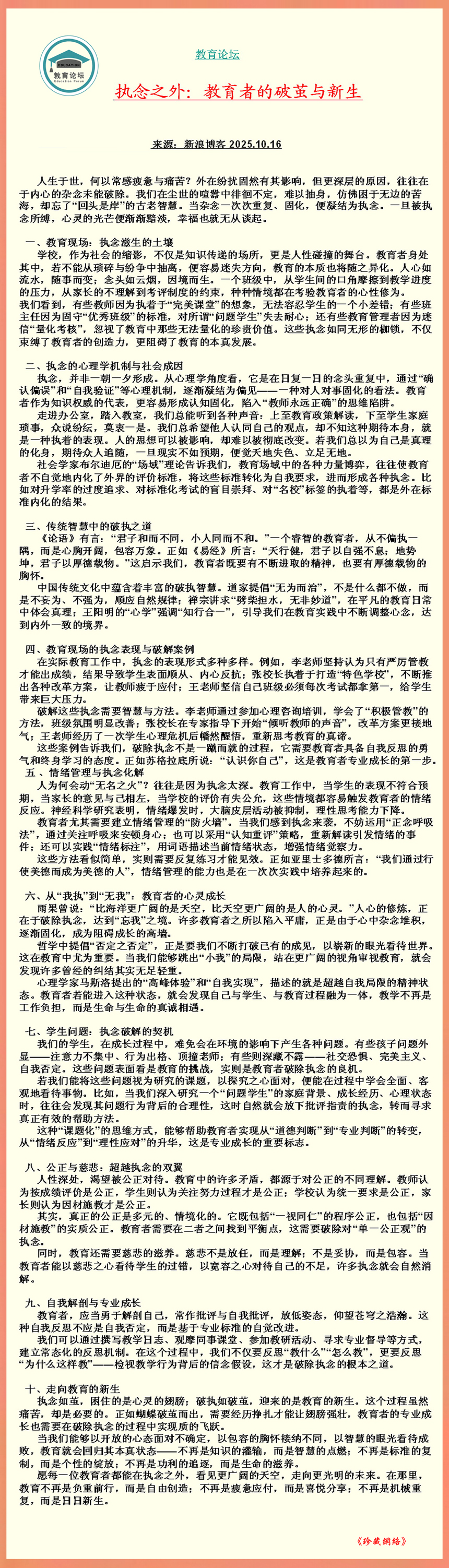 转载:教育论坛《执念之外:教育者的破茧与新生》