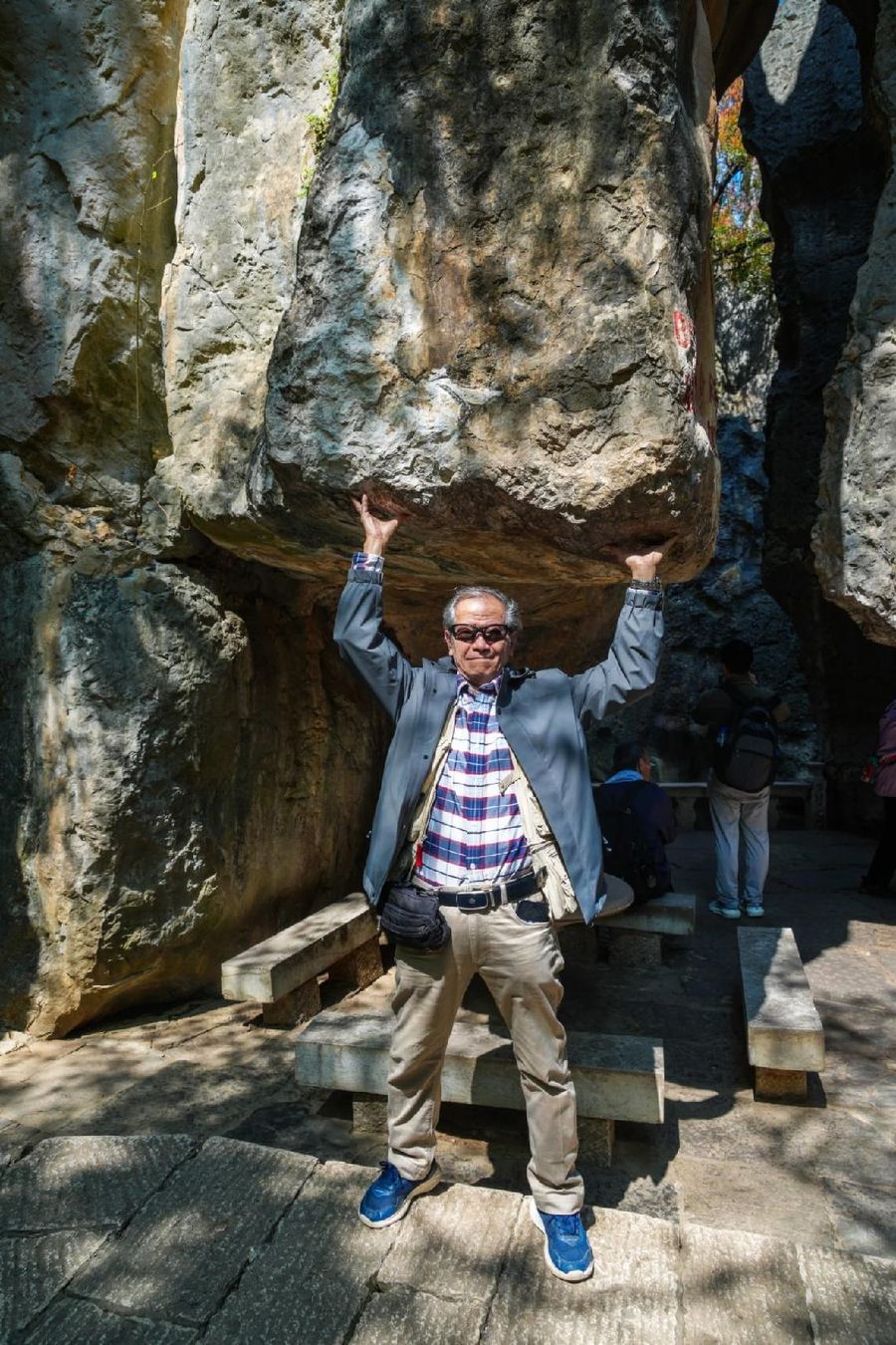 现今重遊故地,挺直腰干,双手托起"巨石",让生活上的一切、向上"推"!