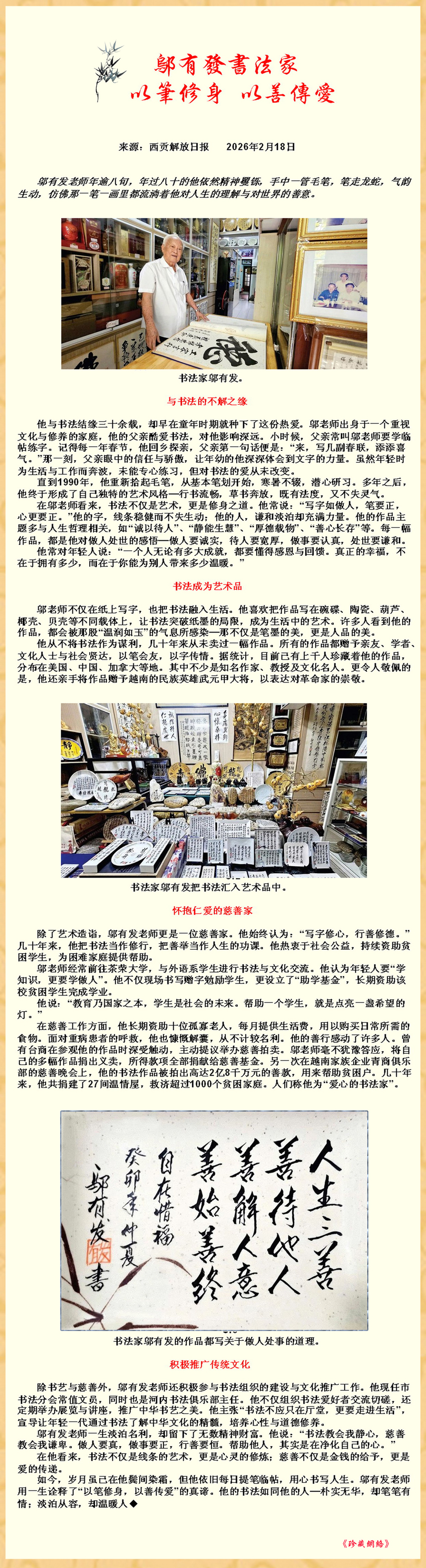 邬有发书法家 以笔修身 以善传爱