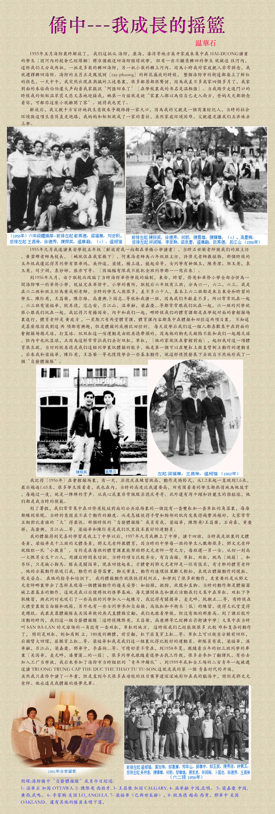 这篇文章最突出的价值在于其“微观史” 的意义。它没有宏大的历史叙事,而是通过作者温华石先生(即温相强)个人的求学与成长轨迹,生动地再现了上世纪50年代中后期,越南海防华侨社群的生活状态、教育变迁以及青少年精神风貌。