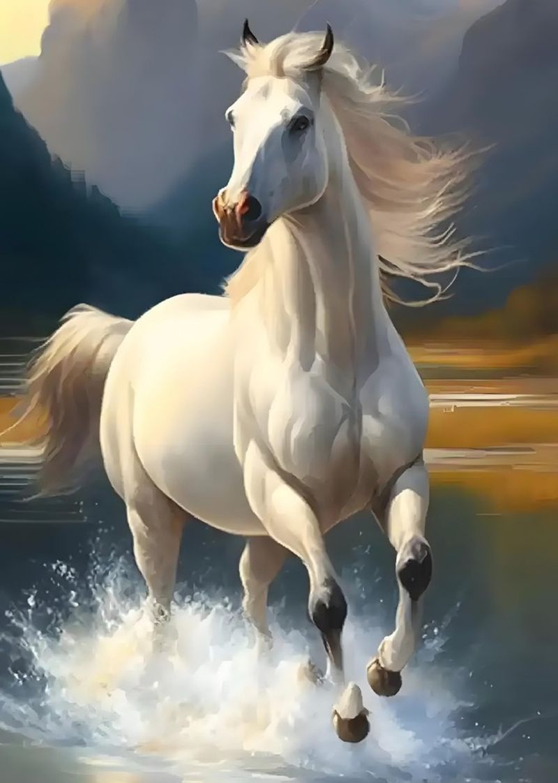 (跋)香江黃公鎮海以駿馬丹青二幅賀歲,一作白駒踏浪,一繪群馬越澗。筆鋒所至,時光如電,山河騰驤。值此新歲將啟,願諸君皆得龍馬精神,蹄聲所向,俱化坦途。遙奉俚句,共揖春暉。