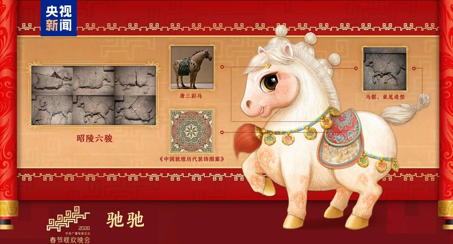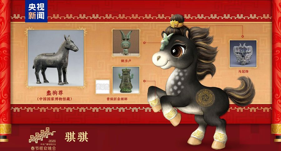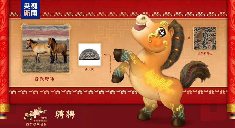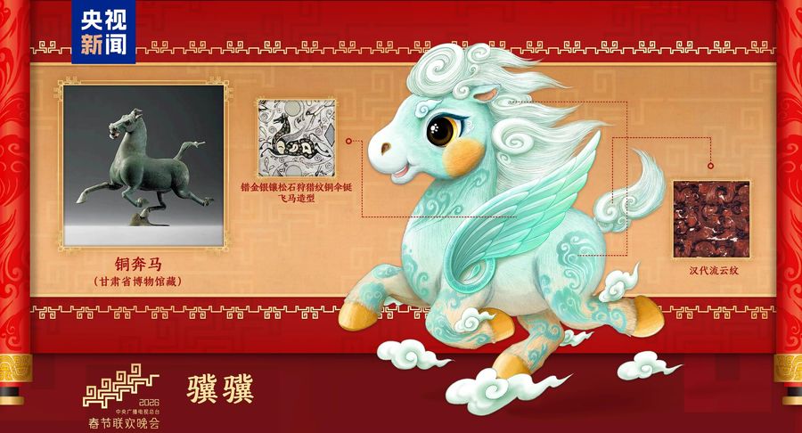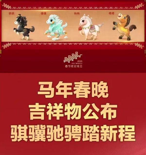 中央广播总台今天公布马年春晚吉祥物 骐骐 骥骥 驰驰 骋骋四匹马如下