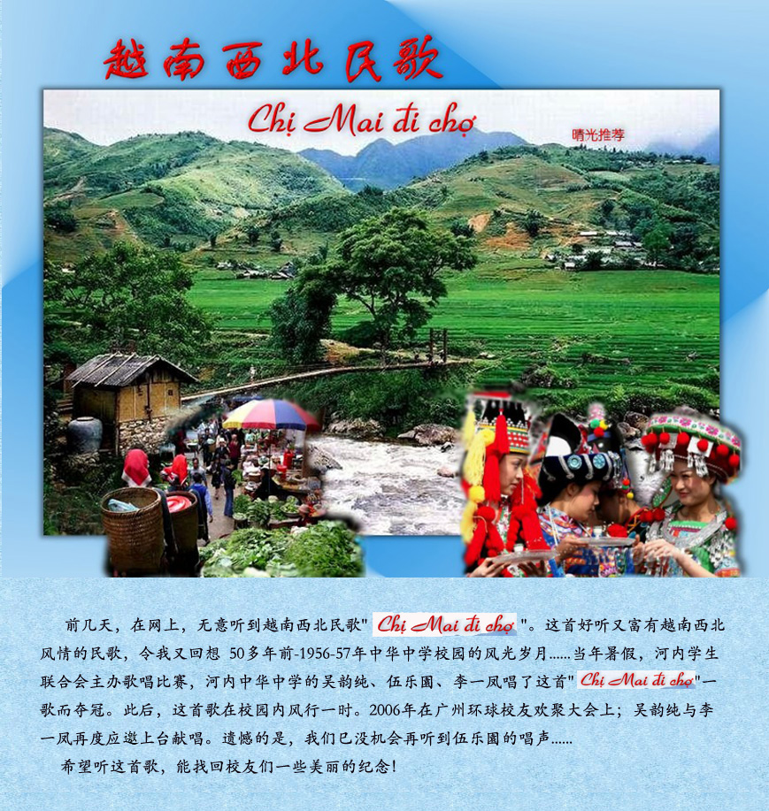 "Chi Mai Di Cho"这首歌-据她说:是在获第一名独唱大奖后,在各地巡迴表演时演唱的歌曲。
